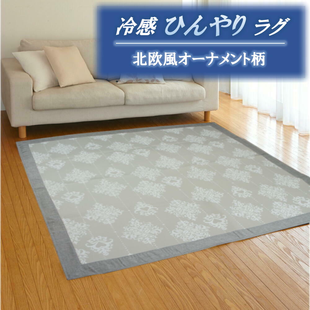 185x185cm(2畳用)ひんやりクール冷感ラグ ウレタン入ふっくらラグ「北欧オーナメント柄」 夏用ラグ