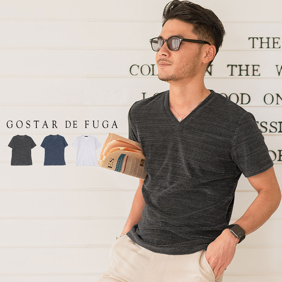 【2020 S/S新作】"GOSTAR DE FUGA【ゴスタールジフーガ】スラブパイルVネック半袖カットソー/全3色"【返品対象外商品】【日本製】メンズ 20代 30代 40代 ファッション 服 トップス 半袖Tシャツ きれいめ 綿 コットン パイル生地 白 無地t 無地カットソー 黒 白 紺 春 夏